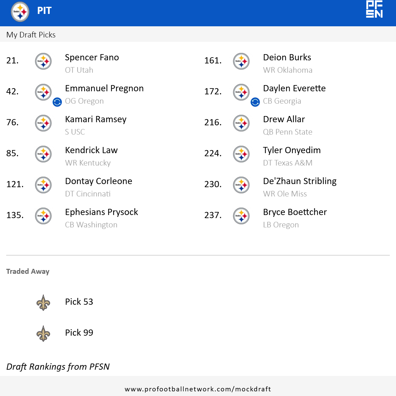 No first round wide receivers were available at this selection, which forced a pivot in strategy, so Ioane became the pick based off the Steelers philosophy under Omar Khan and Andy Weidle, which has been consistently building both interior lines on offense and defense since taking over personnel decisions. The loss of Issac Seamlau to free agency helped make this pick much easier and created an immediate hole that needed to be filled with premium talent. The Steelers have historically valued offensive line play above most other positions, and this selection continues that tradition while addressing a position of need.