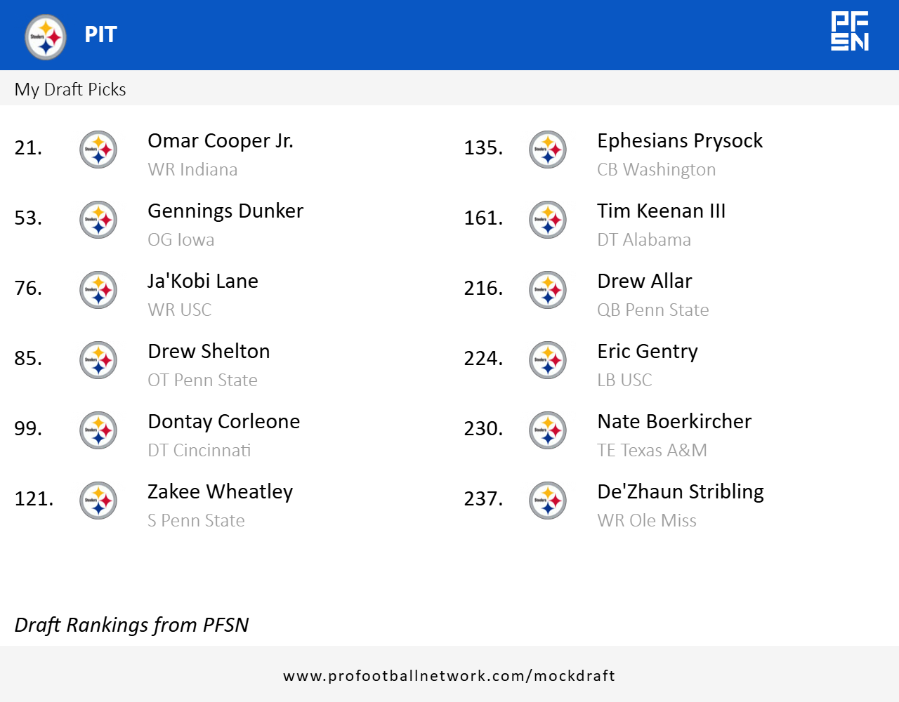 Welcome to our first comprehensive mock draft of the 2026 off season. In this first post NFL Combine mock draft I utilized PFF's extensive scouting database and evaluation metrics, working through all twelve of the Pittsburgh Steelers draft picks with meticulous attention to detail. I made no trades up or down the draft board, instead allowing the draft to unfold naturally and made my picks based off of team needs, positional value, and past organizational philosophy under the current front office regime. This was not the perfect draft by far, but the way the board fell and how prospects aligned with Pittsburgh's needs, I feel this draft would be a significant success for the Pittsburgh Steelers and would address multiple critical areas of concern heading into the 2026 season. Using an nfl mock draft simulator approach, I evaluated each selection against both immediate needs and long-term roster construction goals.